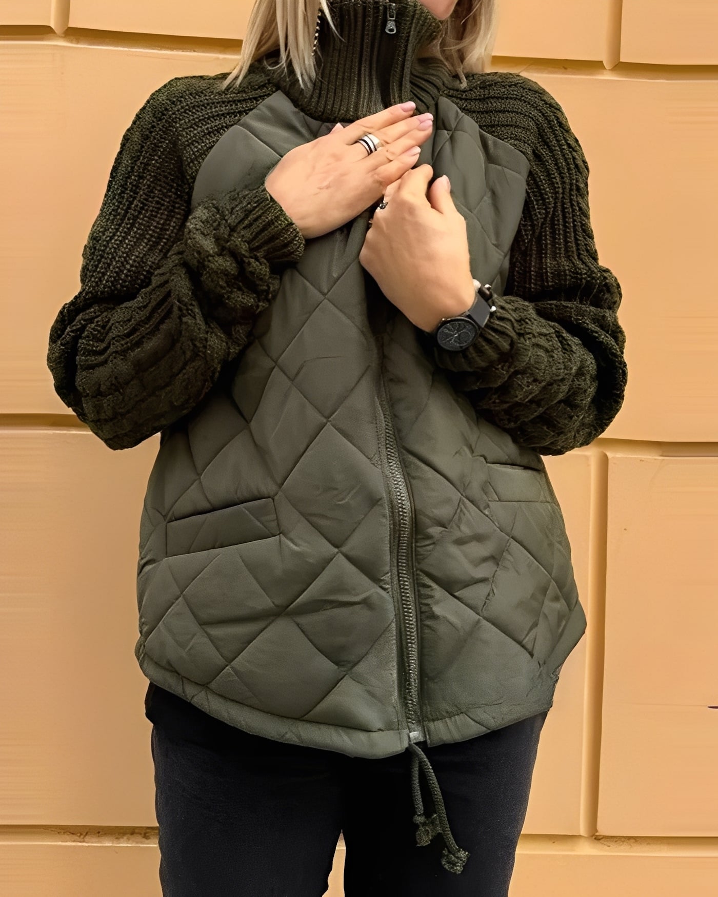 Maria – pikowana kurtka z dzianinowymi rękawami