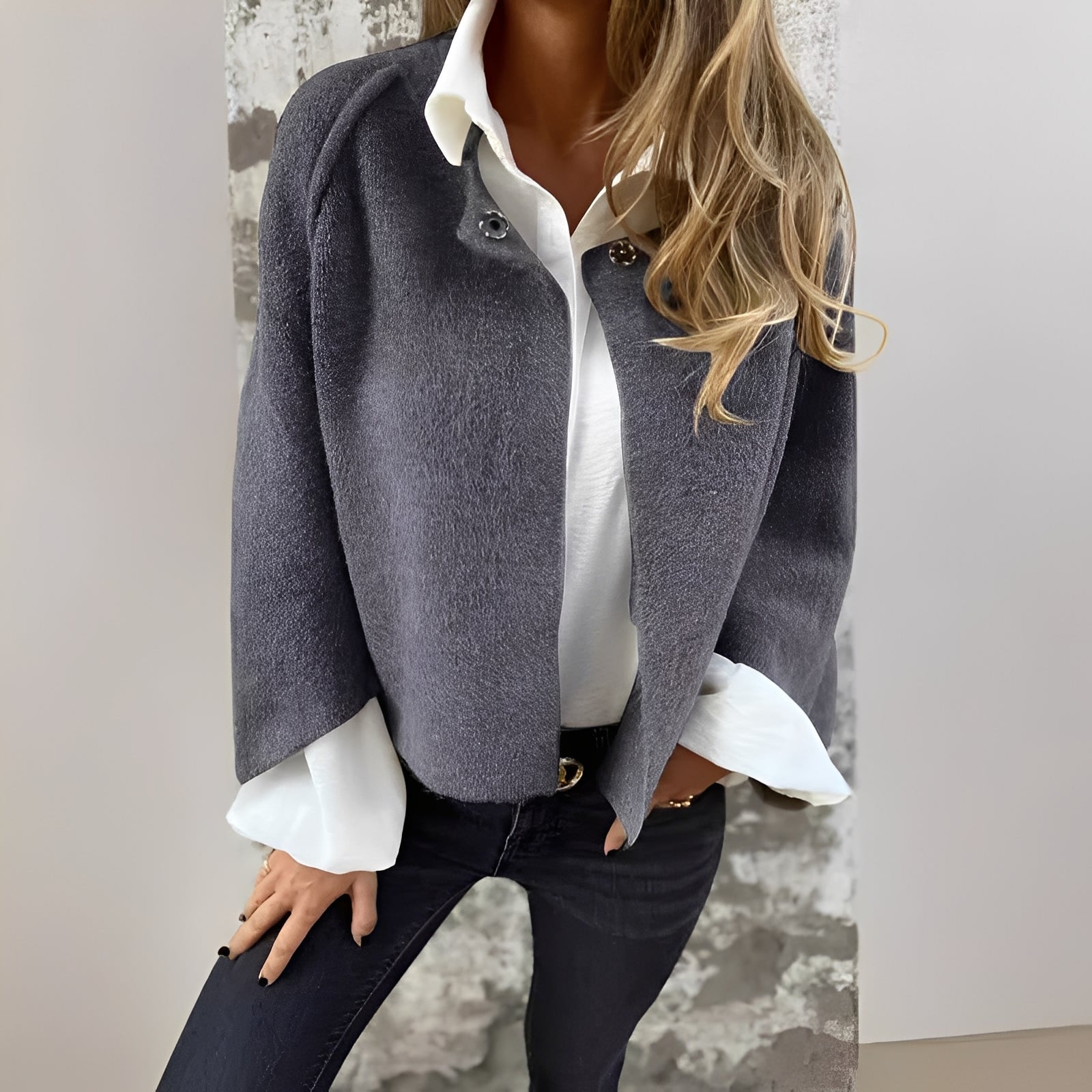 Maria to kurtka, która podnosi każdą stylizację – dzięki swojej wyrafinowanej formie, luźnemu krojowi i kobiecym detalom. Krótka długość i rozszerzone rękawy tworzą elegancki wygląd, który jest zarówno klasyczny, jak i nowoczesny. Idealna do noszenia na warstwy w chłodne dni lub jako stylowa odzież wierzchnia w okresach przejściowych.