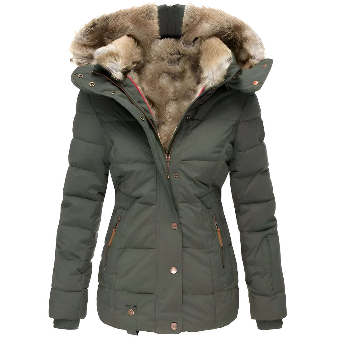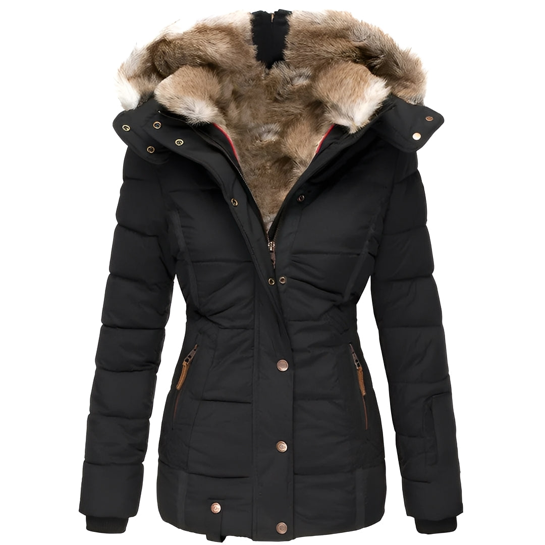 Komfort, styl i przyjemne ciepło. Maria - ocieplana kurtka zimowa z kapturem i dopasowanym krojem zapewnia niezawodną izolację i utrzymuje Cię w komfortowej temperaturze w zimne i wietrzne dni. Dopasowany model puchowy podkreśla Twoją sylwetkę, jednocześnie zapewniając pełne pokrycie do codziennego użytku. Idealna zarówno na luźne wypady, jak i codzienny dojazd – ta ocieplana kurtka z kapturem łączy praktyczną ochronę z nowoczesnym zimowym stylem. Kaptur jest nie tylko ocieplany, ale można go również rozpiąć na zamek błyskawiczny, co nadaje stylowy i nowoczesny efekt.